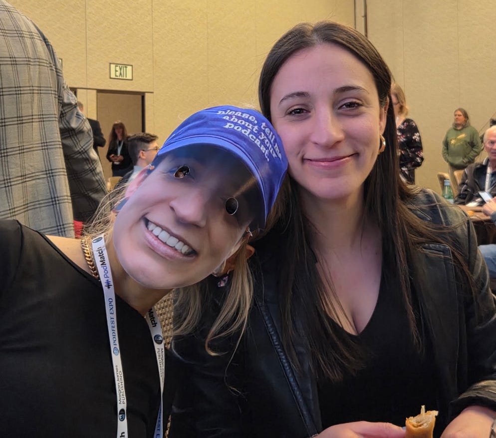 P.s. here’s Lauren wearing an Arielle mask. And the real Arielle next to her. We were at the Podcast Hall of Fame induction ceremony, which now includes Arielle! Lauren gave the induction speech. Watch it here, starting at the 10-minute mark.