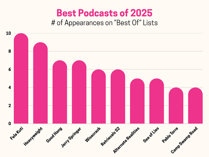So, which shows appeared on the most best-of podcast lists? We’re sharing the podcasts below, along with notes and commentary from us. And since we can’t get to everything here, we're getting into the list on a Substack Live event. We’ll touch on things like:
